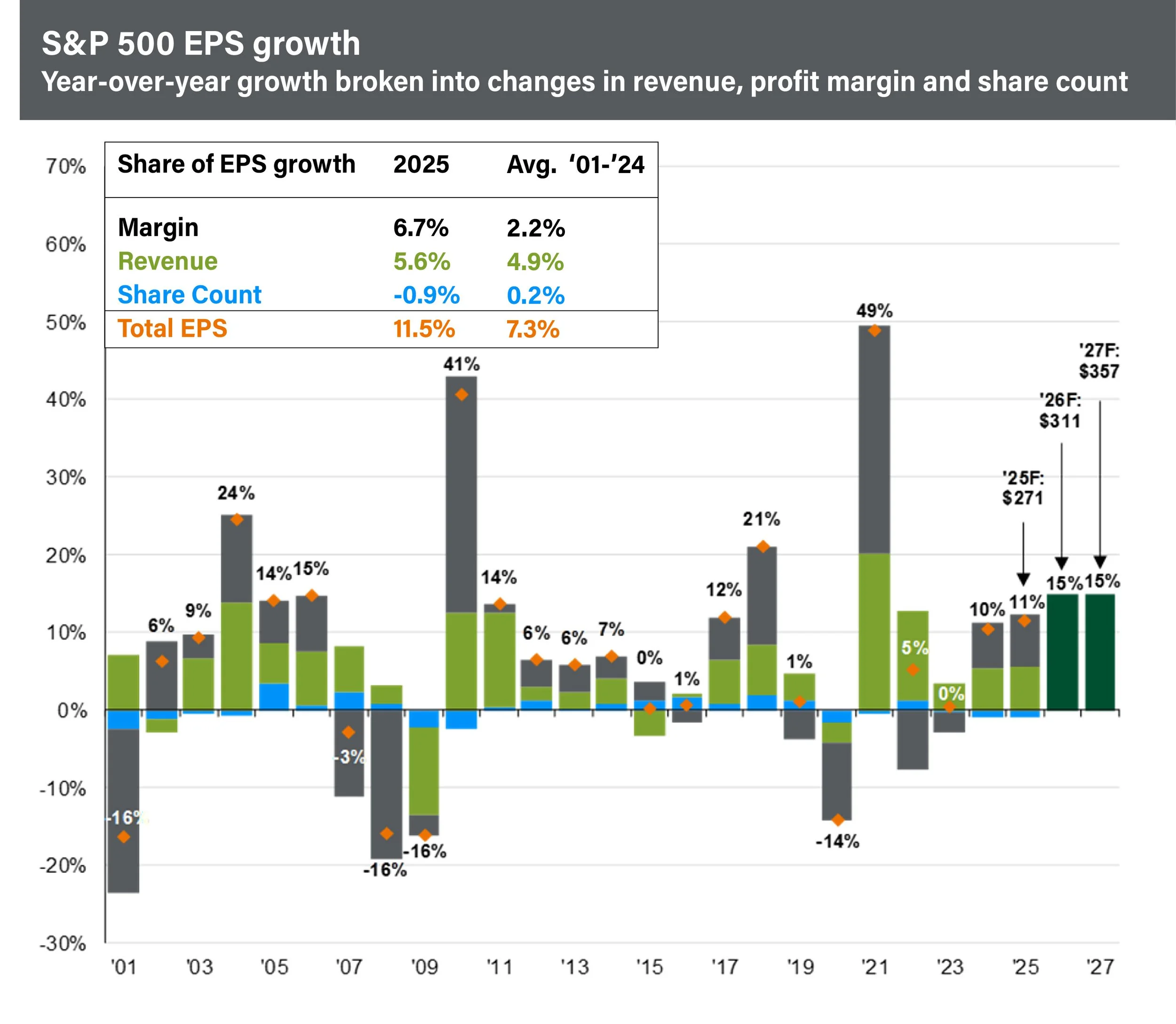 Perhaps most importantly, analysts expect the S&P 500 to grow earnings by 15% in 2026, which is nearly twice the trailing 10-year average (annual) earnings growth rate of 8.6%. This strength reflects broad-based sector participation, with all 11 S&P 500 sectors projected to report year-over-year earnings growth. AI adoption and productivity gains are key catalysts, particularly in technology-heavy sectors, boosting revenues and efficiencies.1